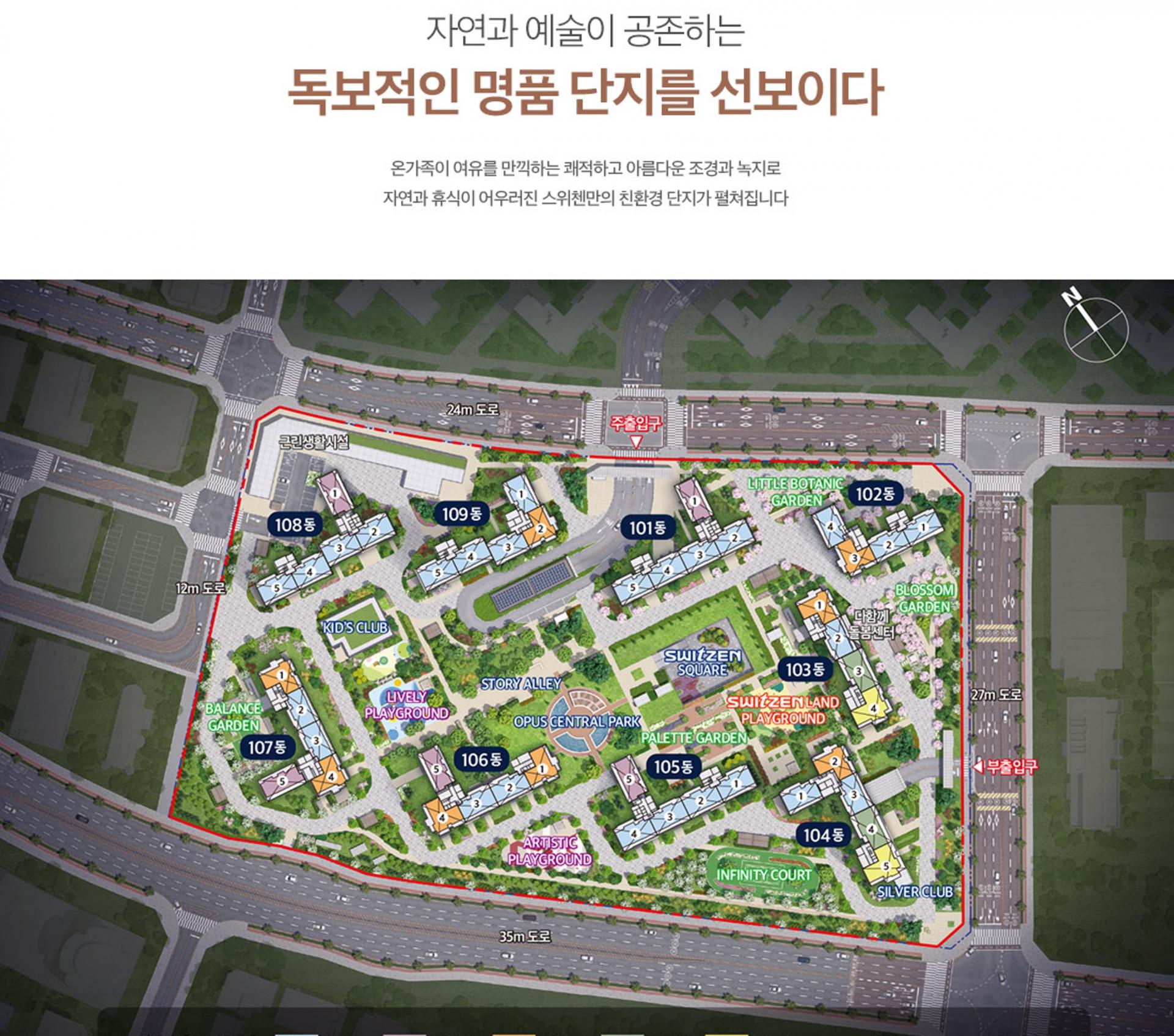 - ※ 본 홈페이지의 단지배치도는 소비자의 이해를 돕기 위해 단지 설계도를 바탕으로 개략적으로 표현하여 실제와 차이가 있을 수 있으며, 시공 시 인·허가 과정에 따라 변경될 수 있습니다.